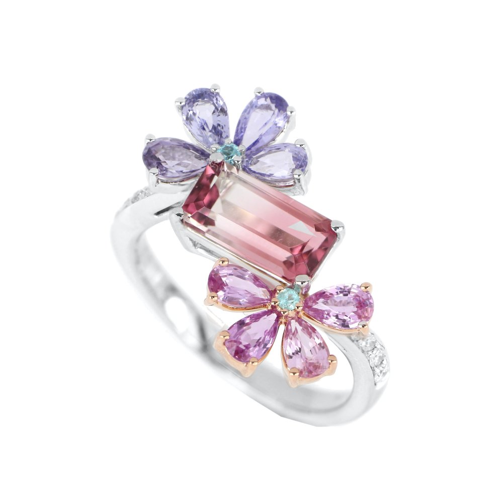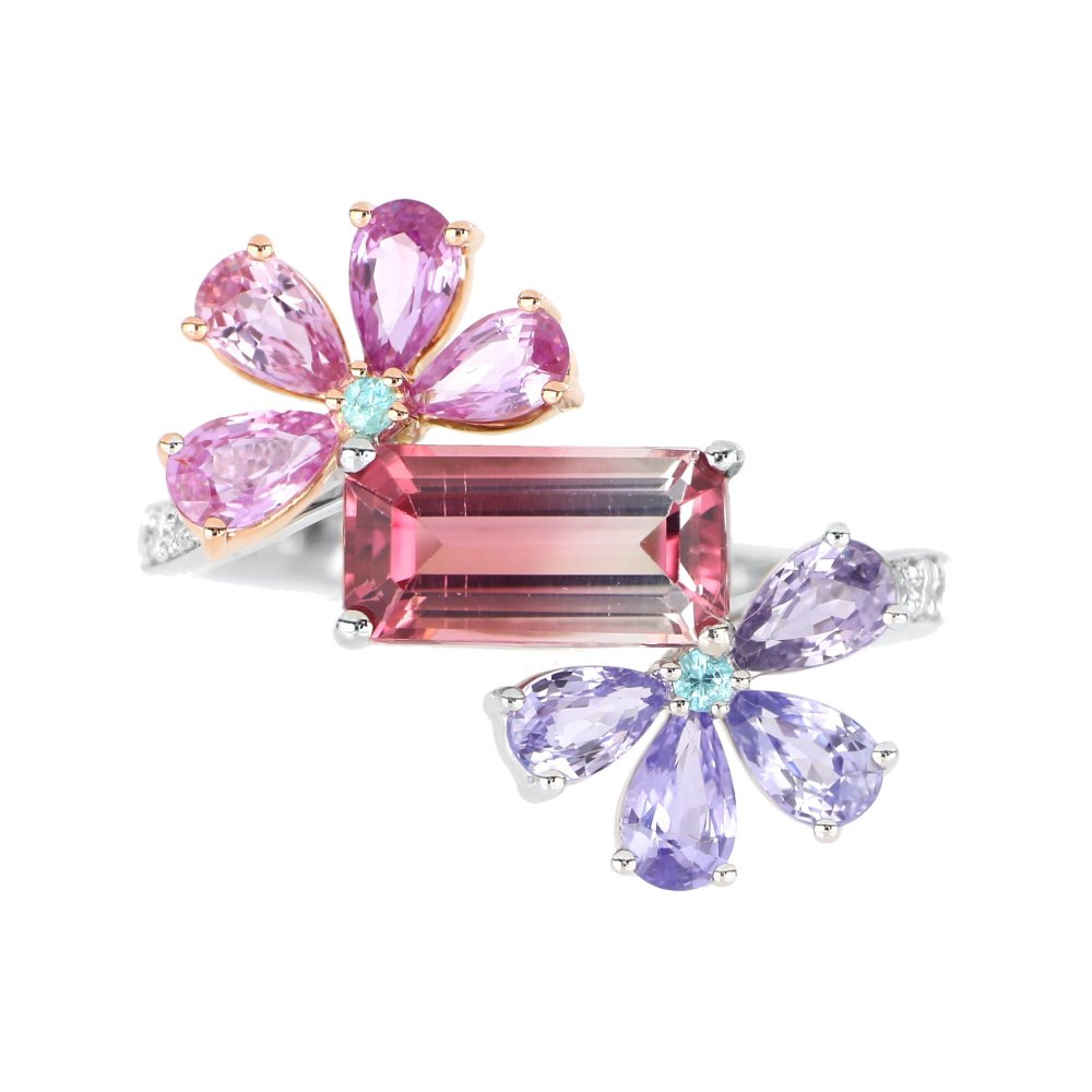Pt900/K18PG バイカラートルマリン リング